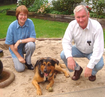 Gestern habe ich schon viel von der näheren Umgebung kennen gelernt, denn bis zum frühen Nachmittag habe ich drei größere Runden gedreht, weil man auf „etwas von mir wartete“. Na ja, ich fand’s gar nicht schlecht, soviel raus zukommen, so konnte ich gut erkunden, welche Hunde noch so hier in der Gegend leben. Und später hat es sich dann ja auch herausgestellt, dass ich völlig „normal konstruiert“ bin. Klar doch. Mein Unterfrauchen hatte mich mitten in der Nacht noch mal raus gelassen, und da war es dann passiert. (Konnte ja niemand anderes von meinem Rudel wissen, denn sie war dann zum Schichtdienst). Jetzt ist alles, wie es sein soll, und alle sind ziemlich entspannt. Frauchen ist sehr erfreut, dass ich schon wieder etwas dazugelernt habe. Sie hält mich wohl für ziemlich intelligent. So warte ich jetzt einen Moment, bis sie mir das Kommando gibt, dass ich ans Futter darf, und genauso ist es, wenn die Terrassentür aufgeht. Sie geht dann raus, sondiert die Lage und wenn alles klar ist, dann darf ich. Sie hat übrigens zu Herrchen gesagt, wenn es ihnen gelingt, mich so super zu erziehen, wie es für einen so imposanten Hund wie mich erstrebenswert wäre, dann wäre ich das Extra-Sahnehäubchen-Sahnestückchen und der tollste Hund der Welt. Na, an mir soll es nicht liegen! Wir halten uns übrigens viel im Garten auf, ist ja auch tolles Wetter. Eigentlich wollte ich den Leuten hier mal zeigen, was so ein großer Hund alles drauf hat, schließlich muss man sich sein Futter ja auch verdienen. Aber dass ich nun an den Gartenzaun hechte, wenn ein Hund vorbei kommt, und dem dann lautstark von mir berichte, das kam wohl nicht so gut an, und es fiel mir gar nicht schwer, lieber zu Frauchen zu kommen, denn sie hat dann leckere Hundewurst für mich. Am Fahrrad zeige ich es den anderen Hunden aber, aber ich denke, wenn sie es nun so gar nicht mögen, dann gewöhne ich mir das auch ganz schnell wieder ab. Immerhin haben wir heute schon ein freilaufendes Reh im Wald gesehen, und ich habe mich beherrscht. Ein erster Schritt. – Apropos Schritt: Herrchen hat auch schon herausgefunden, dass ich am liebsten 12 – 10 km/h laufe, wenn er Fahrrad fährt, dann hängt die Leine locker und für mich ist das wie joggen. Frauchen hat übrigens schon kilo- u. kistenweise lecker Futter und Leckerlis aus den Katalogen bestellt, und so habe ich gar keine Sorge, dass ich zu kurz komme. Der Herr mit den Hundeplaketten wusste übrigens gar nicht, dass er weiterempfohlen wird, aber jetzt weiß er es. Vielleicht gibt es dann bei Euch ja mal eine Plakette umsonst .... Was gibt es sonst noch zu berichten? Ach ja, meine neuen Leute sind ganz gerührt, wenn ich mich morgens ganz bangig freue, wenn Sie ausgeschlafen haben. Obwohl die Schlafzimmertür nur angelehnt ist, habe ich es respektiert, dass sie allein schlafen wollen. Naja, ich kann sie ja hören ;-) . Frauchen hat auch das tolle große Hundespielebuch von Christina Sondermann bestellt, damit es mir nicht langweilig wird, und heute habe ich schon ein eigenes Knotenhandtuch bekommen. Ball gab’s hier schon. Ach, und Unterfrauchen findet mich auch ganz knuddelig. Die ist wohl die erste, die ich komplett um den Finger wickle. Also, alles paletti! Übrigens habe ich gehört, wie sie hier in höchsten Tönen von Euch geschwärmt haben, und da kann ich nur beipflichten. Toll, wie Ihr Euch um mich und meine verwundete Seele gekümmert habt. Werde das nie vergessen. Als Ihr immer kleiner wurdet, musste ich richtig schlucken, aber ich glaube, Ihr habt meine neuen Leute ganz gut ausgesucht. Jedenfalls habe ich nicht geweint, denn sie scheinen hier sehr verständnisvoll. Alles Gute für meine alten Kumpels, denen ich auch viel Glück wünsche! Ein schönes Wochenende noch, Euer Benno Bremen, 25. August 2007