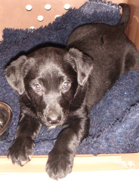 Die kleine schwarze Hündin mit ganz kleinem weissen Abzeichen an der