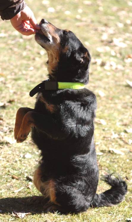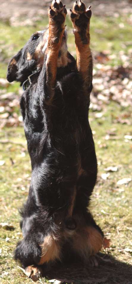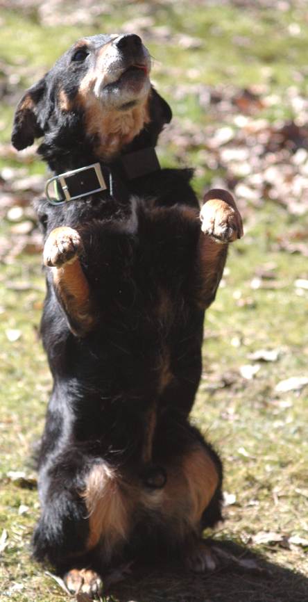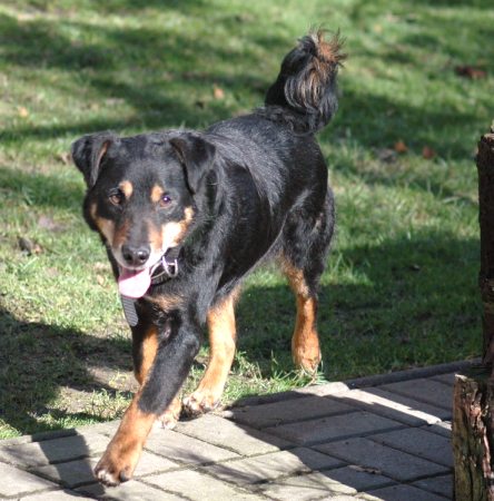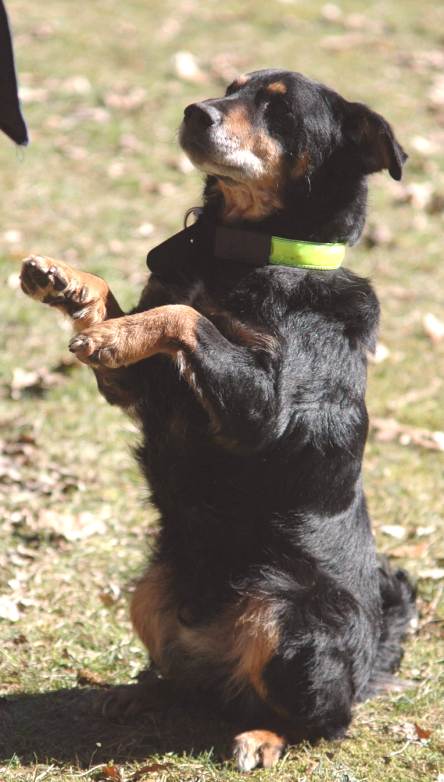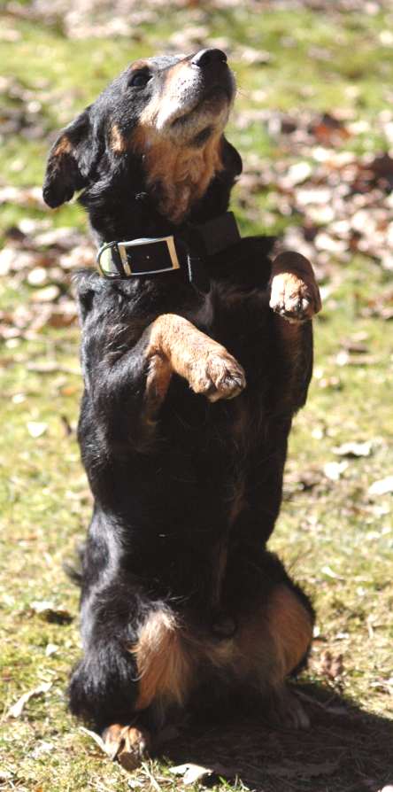 Peppino wurde kastriert, überstand alles sehr gut und es war eigentlich der Himmel auf Erden. Doch dann begann eine Zeit, die ihn immer dichter an die Kante seines Glückes bringen sollte: Peppino musste mit den läufigen Hündinnen zusammen leben und auf den Wegen zu den Pferdeweiden kam es mit anderen – unkastrierten und freilaufenden – Dorfrüden zu Auseinandersetzungen. Und wie es so ist bei Kämpfen innerhalb eines Rudels: Meist bekommen sich in einer solchen Situation auch die rudel-internen Hunde in die Wolle. In diesem Fall gerieten also zwei der Hündinnen böse aneinander und alle hofften, dass es nach der Läufigkeit wieder harmonisch werden würde. Nur leider bildeten sich im Vierer-Rudel „mit Mann“ (Peppino) kleine Frauengrüppchen, die nun meinten, sie müssten um den hübschen Charmeur kämpfen. Und als es jetzt zum wiederholten Male zu ernsthaften Kämpfen innerhalb der Frauengruppe kam, war klar, dass die Damen eben Hausrecht haben und Peppino wieder gehen muss. Und nun sitzt dieser verzweifelte kleine Mann, der das erste Mal in seinem Leben Zuwendung bekam und in einer atemberaubenden Geschwindigkeit ALLES für seine von ihm vergötterte Halterin gelernt hat, was nur irgend wann einmal einem Hund abverlangt werden könnte, in einem kleinen Zwinger in einer Hundepension und ist verstossen. Ich kann die Reaktion von Peppinos Retterin verstehen – wie oft haben unsere eigenen Hunde unter den hier eingezogenen Vermittlungshunden gelitten, wie oft habe ich meinem Rudel im Stillen versprochen, mit der Vermittlung aufzuhören und mich nur noch um sie, unsere vielen „hängen gebliebenen“ zu kümmern. Nur sind die Wohnverhältnisse bei uns weitaus günstiger als bei Peppinos Retterin und so ist nun eben das Ende des ersten Abschnitts im Glück des kleinen Hundes vorbei. Ich bitte Sie wirklich inständig: WENN Sie einen kleinen Clown mit Witz und Intelligenz suchen, wenn Sie Zeit und Liebe für kleine Terrier haben, wenn Sie ein weiches Herz haben – DANN SCHAUEN SIE IHN SICH BITTE AN und machen Sie einen Spaziergang mit ihm! Sie werden sehen, was für ein wunderbarer Schatz er ist und Sie werden erleben, wie schnell er bereit ist, ALLES für den nächsten Menschen zu tun, der ihm eine Chance gibt. Gerne erfahren Sie von mir die Adresse seiner Pension. Sie können aber auch -nach Mitteilung an mich -Kontakt zu Peppinos Retterin aufnehmen.