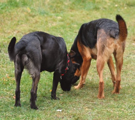 Bosse mag alle Hunde und spielt begeistert im grossen Rudel. Die momentan hier lebenden Welpen behandelt er aber auch sehr nett.