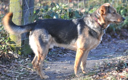 Buma ist ein im Dezember 2007 geborener kastrierter, geimpfter und gechippter, nur 50 cm hoher Rüde. Durch seine geringe Grösse ist Buma gut zu handhaben, er läuft aber auch gut an der Leine im Brustgeschirr. Ich würde mir für Buma weiterhin einen Lebensraum auf dem Lande wünschen, gerne bei Menschen, die ein eher überschaubar geordnetes Leben führen. Ich denke, Buma hat sein Verhalten auch deshalb so positiv verändert, da er hier im Rudel genau weiss, wie der Tagesablauf sein wird und was er zu erwarten hat. Das gibt einem ehemals unsicheren Hund Gleichmut und Gelassenheit.