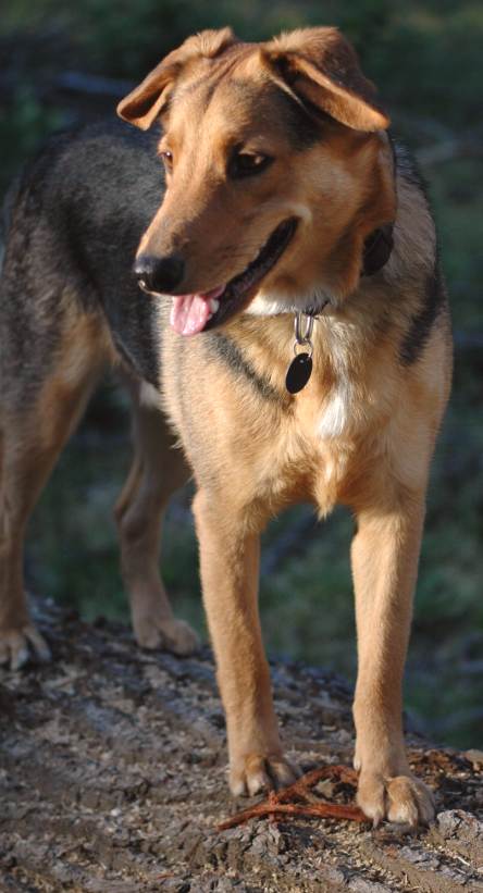Ich kann mir Buma gut beim Agility vorstellen, wie er nicht durch den Pfahlparcour hindurch rennt, sondern geradezu hindurch gleitet. Er ist ein extrem wendiger und eleganter Hund (sicher durch Collie-Anteile), der es liebt, uns Menschen zu gefallen und kleine Dinge zu unserer Zufriedenheit auszuführen. Dazu ist er sehr sensibel, sehr intelligent und mit sehr schneller Auffassungsgabe versehen. Er hält ständig Blickkontakt und ist durch leichtes Kopfnicken zu bestätigen.