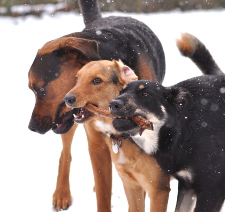 Buma lebt nun seit einiger Zeit bei uns im Haus im eigenen Rudel integriert und hat sich unglaublich gut entwickelt. Er kam als ein nervenschwacher, unruhiger Hund hier an und mittlerweile ist er ein in sich ruhender (soweit bei dem jugendlichen Temperament möglich) ausgeglichener Hund geworden. Er kommt mit allen Hunden gut aus, Fremdbegegnungen werden von mir „überwacht“, soll heissen, ich sage ihm, dass ich da bin, um ihn im Notfall mit den Zähnen zu verteidigen! Und er glaubt mir…..