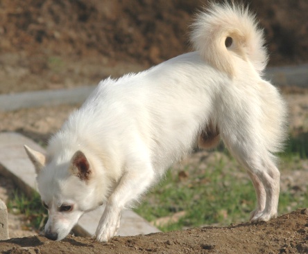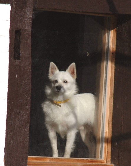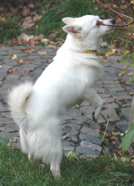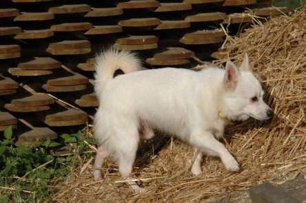 Leicht könnte man annehmen, er sein ein Spitz (die ja gerne das Maul etwas voll nehmen…), aber ich denke, er könnte auch eine nette Dorfkreuzung sein. Er ist auch nicht im geringsten ein Kläffer.