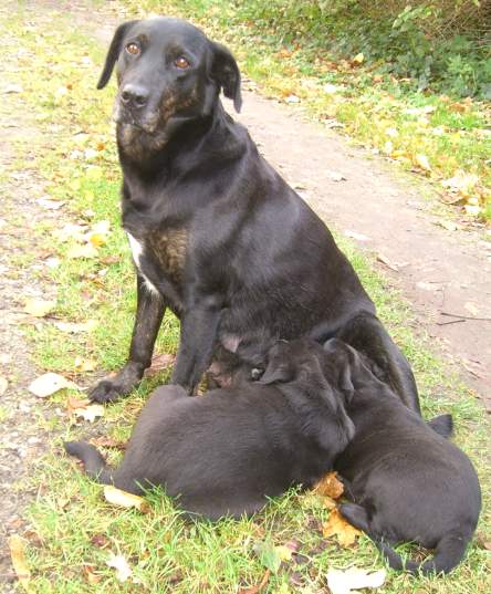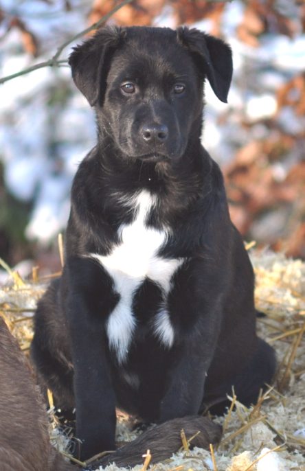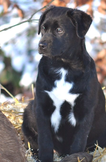 Marie bekommt eine ähnliche interessante Zeichnung wie ihre Mutter, die eine Labrador-Mix-Hündin von allerfeinstem Charakter ist.