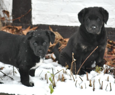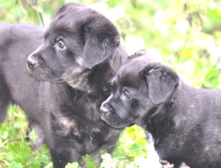 Sie haben immer guten Appetit, wachsen und gedeihen und wären bereit, die nächste Herausforderung, den Umzug in ihren Lebensplatz, anzugreifen. Beide Hunde bekommen eine ähnliche interessante Zeichnung wie auch ihre Mutter, die eine Labrador-Mix-Hündin von allerfeinstem Charakter ist.