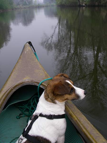 Gestern war dann das erste Mal Kanufahren angesagt. Frauchen hat sich vorher viel zu viele Gedanken gemacht, wie ich das wohl meistern würde. Eigentlich sollte sie doch inzwischen gemerkt haben, dass ich ein ganz cooler Typ bin. Mich bringt so schnell nichts aus der Ruhe. Ich bin allem Neuen gegenüber aufgeschlossen. Hauptsache, meine Leute sind bei mir.