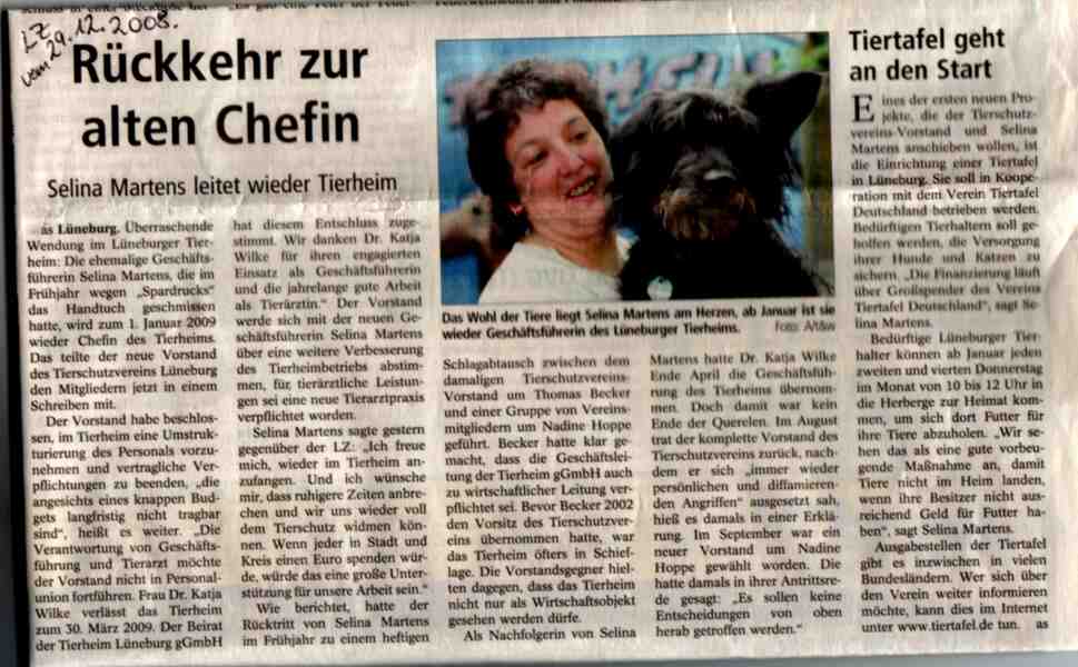 wird das Lüneburger Tierheim wieder von der „alten“ Leiterin geführt,