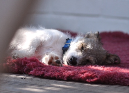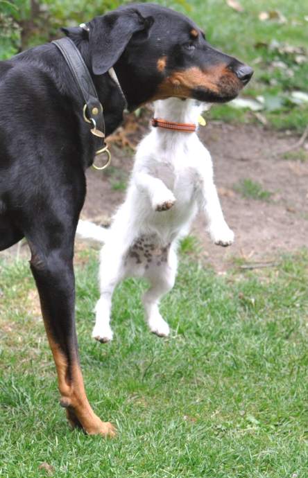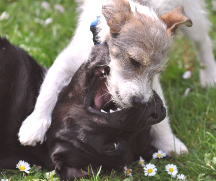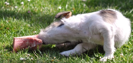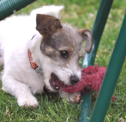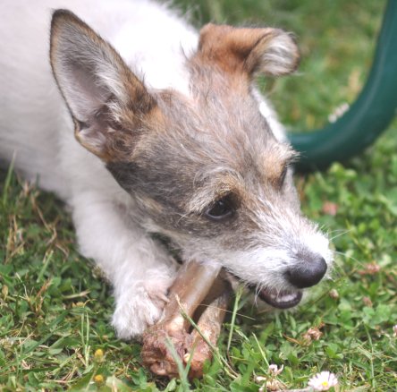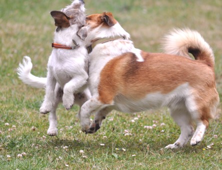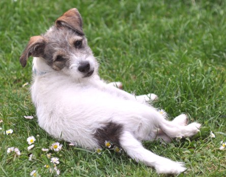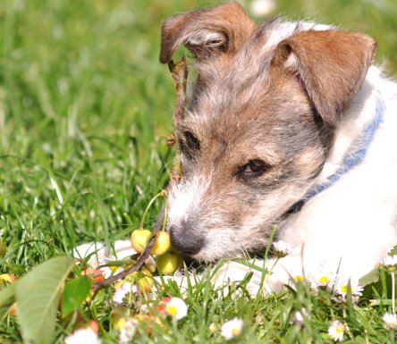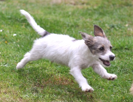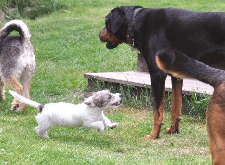 Mika hatte nach kurzer Zeit den Beinamen „unser Sonnenschein“ bekommen, da es kaum einen Tag gab, an dem wir nicht begeistert seinem Charme erlagen, über ihn lachten und uns an ihm erfreuten. Aus dem Meerschwein wurde ein „grosser“ Jack-Russell-Terrier-Mix mit jetzt 4400 gr. Abgabe-Kampfgewicht. In den dreieinhalb Monaten seiner Anwesenheit machte ich fast 1500 Bilder von ihm – in jeder Lebenslage, in jeder Stimmung. Alle Besucher vor Ort waren verzaubert von meinem kleinen Renn-Modell. Jeder wurde gefangen von diesem schelmischen Blick, der absoluten Offenheit und Freundlichkeit jedem und allem gegenüber. Wo Mika auch hinkam – zur Anprobe beim Geschirr-Kauf, zum Tierarzt, zur Jahresversammlung des Lüneburger Tierschutzvereins – alle Menschen sprudelten sofort die Worte „ach, ist der süüüüsssss“ aus sich heraus. Und eigentlich war klar: dieser Zwerg würde nicht vermittelt werden. Die Anfragen zu ihm waren spärlich, aber sie waren vor allen Dingen eines: Nicht geeignet! Und so stand unausgesprochen im Raum, dass unser eigenes Rudel um noch einen Hund grösser werden würde. Bis – ja, bis die zaghafte Anfrage aus Schleswig-Holstein von Pablos Haltern kam, ob ich mir vorstellen könnte, ihn an eben diese Leute zu vermitteln. Und da wurde mir mulmig… Denn Pablo wurde vor fast drei Jahren als sehr schwieriger Angst-Hund (da in einem Erdloch geboren und aufgewachsen) an diese Leute vermittelt und – obwohl Ersthunde-Halter – haben sie es mit Bravour gemeistert, Pablo in die Weltgeschichte zu integrieren. Seine nicht zu ändernden Macken und Spätfolgen werden akzeptiert, aber es werden auch immer wieder neue Dinge an ihn heran gebracht. Wenn ich also diesem Platz nicht zustimmen würde (kastrierter Erstrüde, ländliches Umfeld, Einfühlungsvermögen und Durchhalte-Erfahrung, ausbruchsicheres Grundstück mit „Oma und Opa“ mit eigenen Hunden gleich nebenan), dann müsste ich Mika aus der Vermittlung nehmen und ihn endgültig adoptieren. In den jetzt bald 30 Jahren vor Ort und unter dem Namen Hundshuus agierend haben durch meine Arbeit ca. 1000 Hunde ein neues Zuhause gefunden, davon hätte ich mindestens 500 gerne behalten. Wenn also nicht der immer wieder schmerzhafte Grundsatz: „Vermittlung in optimales Umfeld“ der Hauptgedanke dieser Arbeit gewesen wäre, hätte ich schon nach kurzer Zeit meine Arbeit einstellen müssen. Und der Gedanke: „Welpen bleiben nie, sie finden alle ein gutes Zuhause“ war ebenso ein Leitmotiv. Nun war da also mein Sonnenschein, mein Clown und Schelm, mein Ferrari und Maserati, mein Schlitzohr, meine Charme-Offensive, mein Allerschönster kleiner Zwerg mit tiefem Fahrwerk, mein zarter Terrier, mein Prinz, mein Ursi-Freund – und ich musste mich entscheiden. Und ich habe mich entschieden, denn letztendlich sind unsere eigenen Hunde die verstossenen, ungewollten, ungeliebten und schwierigen Tiere dieser Gesellschaft, die hier eine Bleibe gefunden haben. Als mein Mann vor 20 Jahren so gerne einen Rauhhaar-Dackel behalten wollte, sagte er damals frustriert: Die guten Hunde gibst Du immer weg und wir behalten den Rest……. Und das stimmt: Unsere Hunde sind der „Rest“, den niemand haben möchte und die ich unter ganz freiwilligen Umständen sicher nicht unbedingt gewählt hätte. Denn natürlich gibt es bei allen Menschen nicht nur im Miteinander Vorlieben und Abneigungen – auch die Hundevermittler sind durch besondere Vorlieben und evtl. Vorurteile befangen. Und wer anderes behauptet, dem glaube ich nicht. Und – um mich zu outen – mein Herz hat immer den Terriern gehört. Je kratzbürstiger und je rauher im Fell, umso besser. Lange Rede, kurzer Sinn: Mika wurde vermittelt. Und nachdem er nun nicht mehr hier lebt, möchte ich wenigstens die Gelegenheit nutzen, Ihnen noch einige Eindrücke zu vermitteln, was es für ein besonderer kleiner Hund war. Wir sind sehr traurig und mein Mann sagte es gestern Abend sehr richtig: Es fühlt sich an, als sei er verstorben……